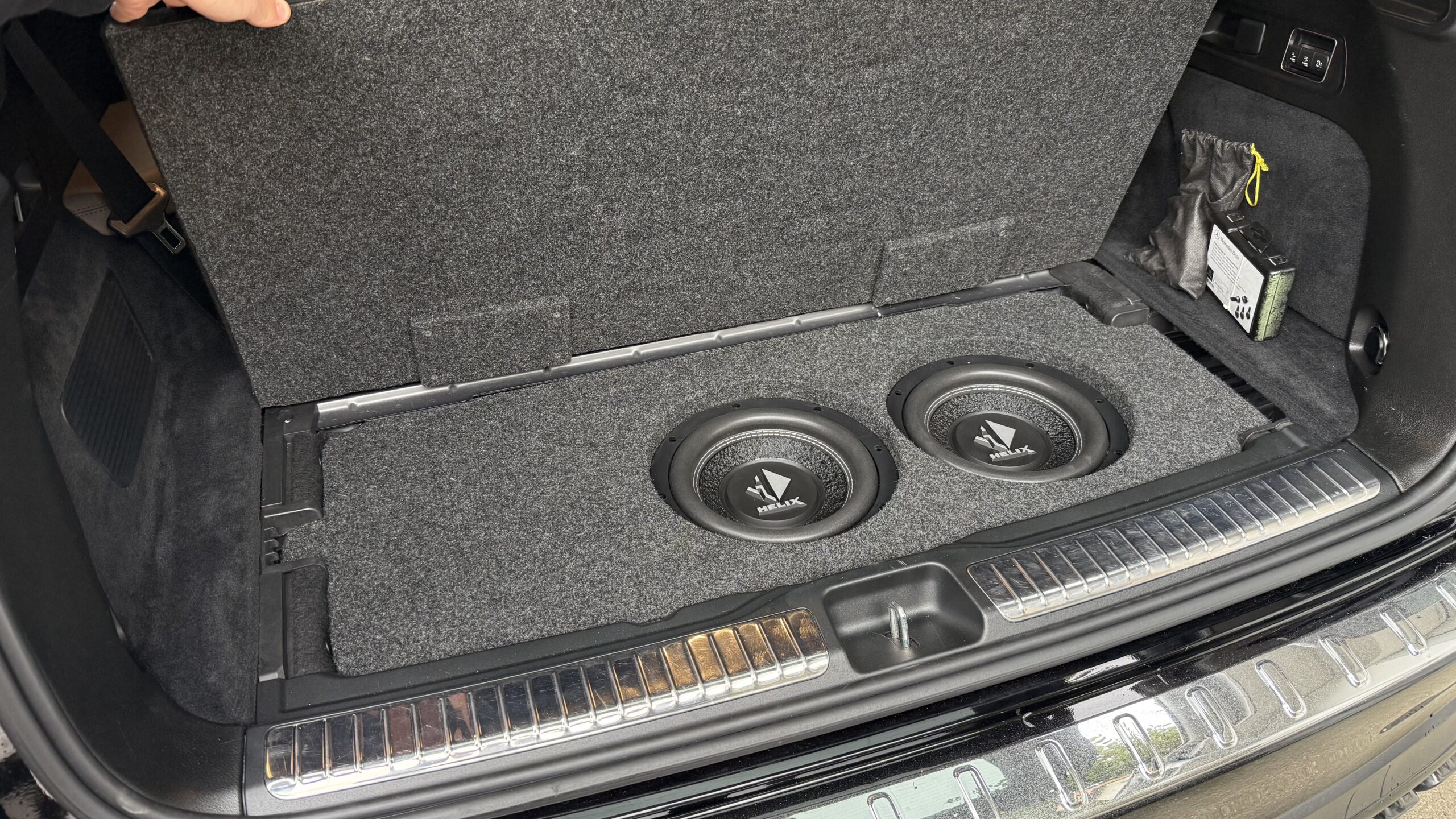 Mercedes GLS AMG mit Burmester 3D, wenn dem Kunden das beste originale Soundsystem nicht ausreicht, zB. Tiefbass, Gesamtlautstärke und Bühnenabbildung, dann kommen wir mit BRAX Dreiwege Vollaktiv Soundsystem und 2x 25 cm Subwoofern, versteckt im Kofferraum.