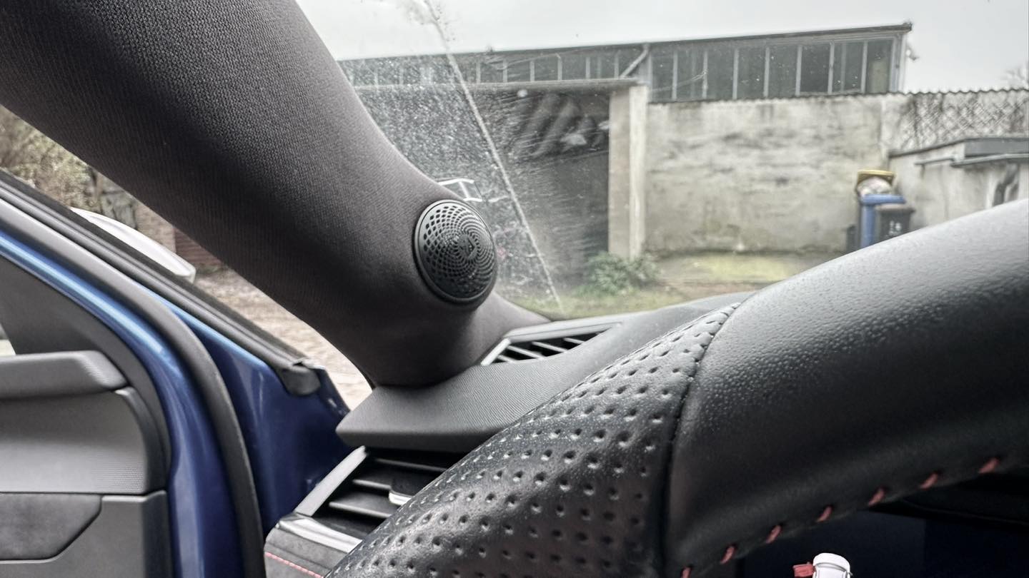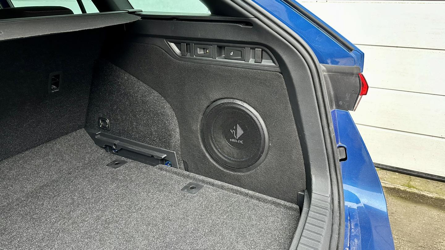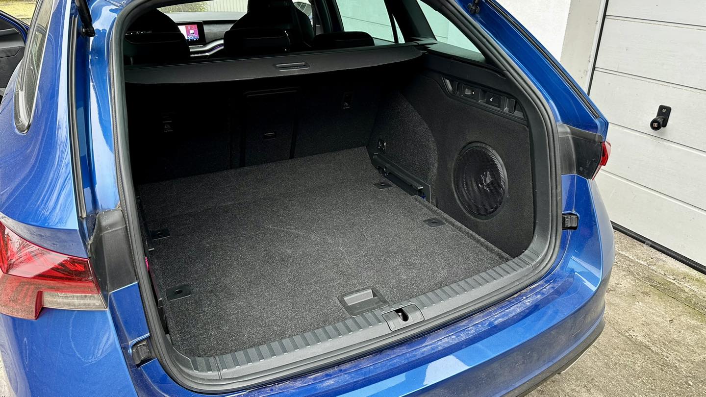 Skoda Octavia IIII mit tollen Sound aufgewertet, Helix Vollaktives 2-Wege Frontsystem in angefertigten A-Säulen mit ordentlich Dämmung in den Türen und ein 10“ Helix Subwoofer im anfertigen GFK-Sritenteilgehäuse, alles angetrieben von einer Match 6 Kanal Endstufe