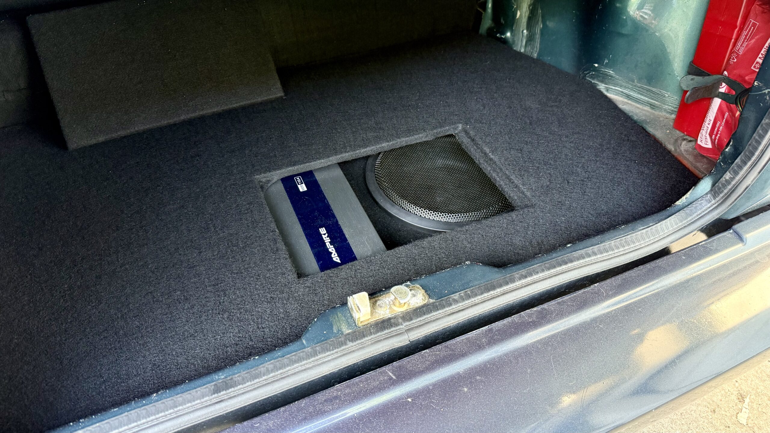 VW Golf 1 Cabrio ordentliches aber komplett Verstecktes Soundsystem verpasst. Im Detail: 2 Wege Frontsystem, 4 Kanal Endstufe und 10″ Subwoofer in der Reserveradmulde